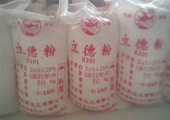 立德粉是一种白颜料,硫化锌及硫酸钡的混合物。 由硫酸锌和硫化钡溶液起反应而得的沉淀,经过滤、干燥及粉碎后,再煆烧至红热,倾入水中急冷而得。遮盖力次于钛白。不耐酸。 现在有些立德粉用表面活性剂进行过表面处理。 比色指数 颜料白 5 CI 77115 ZnS 30% / BaSO4 70% 或 ZnS 60% / BaSO4 40% 锌钡白由BaSO4和ZnS两种组分,涂料中这两种成分的混合并不是一种分离状态。 BaSO4 具有菱形晶体结构 ZnS 具有立方体或六边形晶体结构 由硫酸锌溶液跟硫化钡溶液混合制得:ZnSO4(溶液)+BaS(溶液)=ZnS•BaSO4 锌钡白颜料比硫化锌用途广。在结构上与硫化锌成分相似,含有硫酸钡成分,耐久性稍差。抗粉化性较差。价格便宜,因此可部分替代二氧化钛使用。 锌钡白性能 性能指标 锌钡白 折射率 2 密度 4.2 吸油性 10-12 pH值 8-9.5 遮盖力 有限 化学稳定性 好,除了pH < 3的酸 在紫外光照射下,ZnS褪色成灰色。为避免这一问题,可以在制备锌钡白时加入镍粉和铁粉,先煅烧钴和铜。 可应用于所有塑胶,油漆、涂料、热塑性塑料、热固性塑料和纸张。